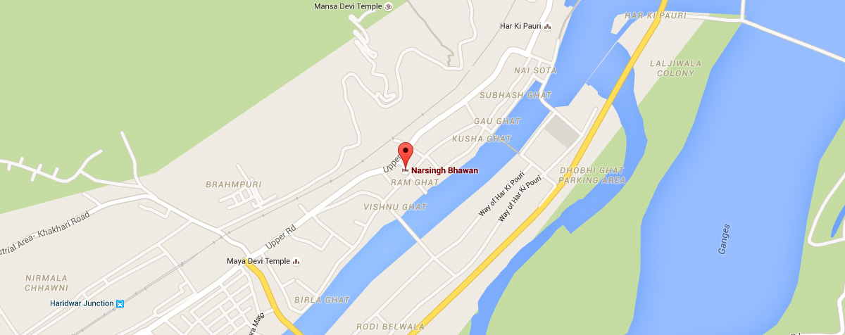 Shri Narsingh Bhawan Dharamshala (Trust) is situated in the Holy City Haridwar near Mansa Devi Ropeway, Har ki Pauri. Shri Narsingh Bhavan is easily accessible and a walking distance from the railway station and bus stand.